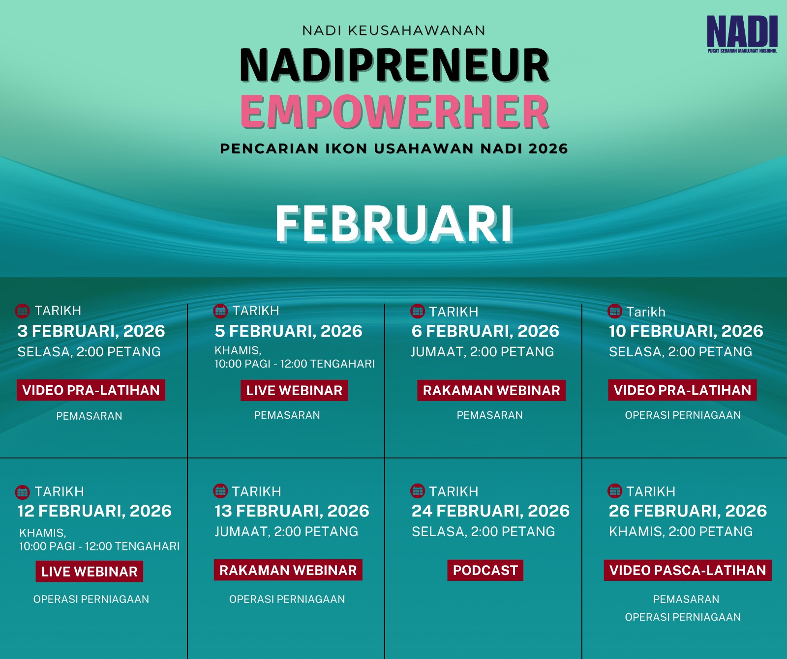 Tarikh : 5 Februari 2026 Masa : 10.00am – 11.00am Lokasi : NADI Kampung Tebuk Haji Yusuf (ONLINE) Peserta : 1 orang Tujuan Webinar NADI Nurture eKelas Usahawan Aktiviti Mempelajari kaedah pantau prestasi kempen digital, alat […]