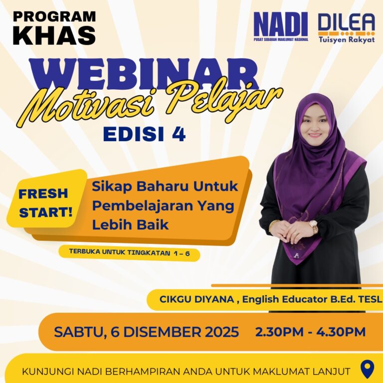 📢 PROGRAM KHAS: WEBINAR MOTIVASI PELAJAR EDISI 4 📢 Hello pelajar Tingkatan 1 hingga 6! 🌟 Rasa semangat makin pudar atau perlukan motivasi baru untuk terus fokus dalam pelajaran? Jom sertai Webinar Motivasi Pelajar Edisi 4 yang membawakan tema “Fresh […]