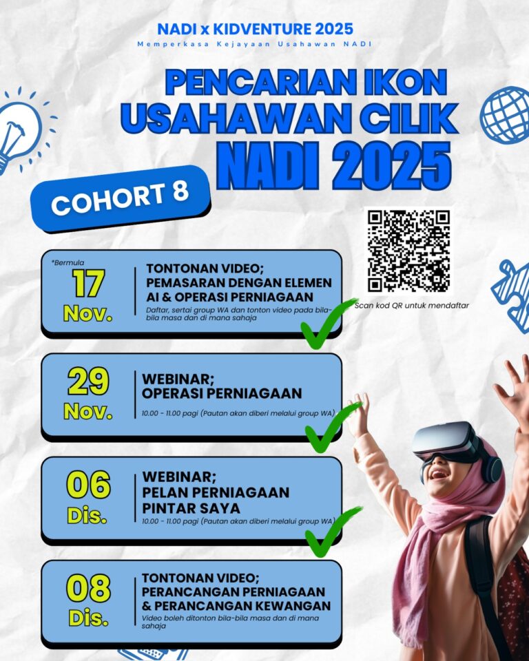 VIDEO, RAKAMAN WEBINAR & PODCAST – PERANCANGAN PERNIAGAAN & KEWANGAN SEDIA UNTUK DITONTON OLEH PESERTA KIDVENTURE COHORT 8! Jom tonton video di mana-mana & bila-bila masa sahaja. Klik pautan di bawah untuk menonton kandungan program:👉 https://form.nadiusahawan.com/kv-c8-perancangan-perniagaan-dan-kewangan-form PANDUAN UNTUK IBU BAPA/PENJAGAIdea […]