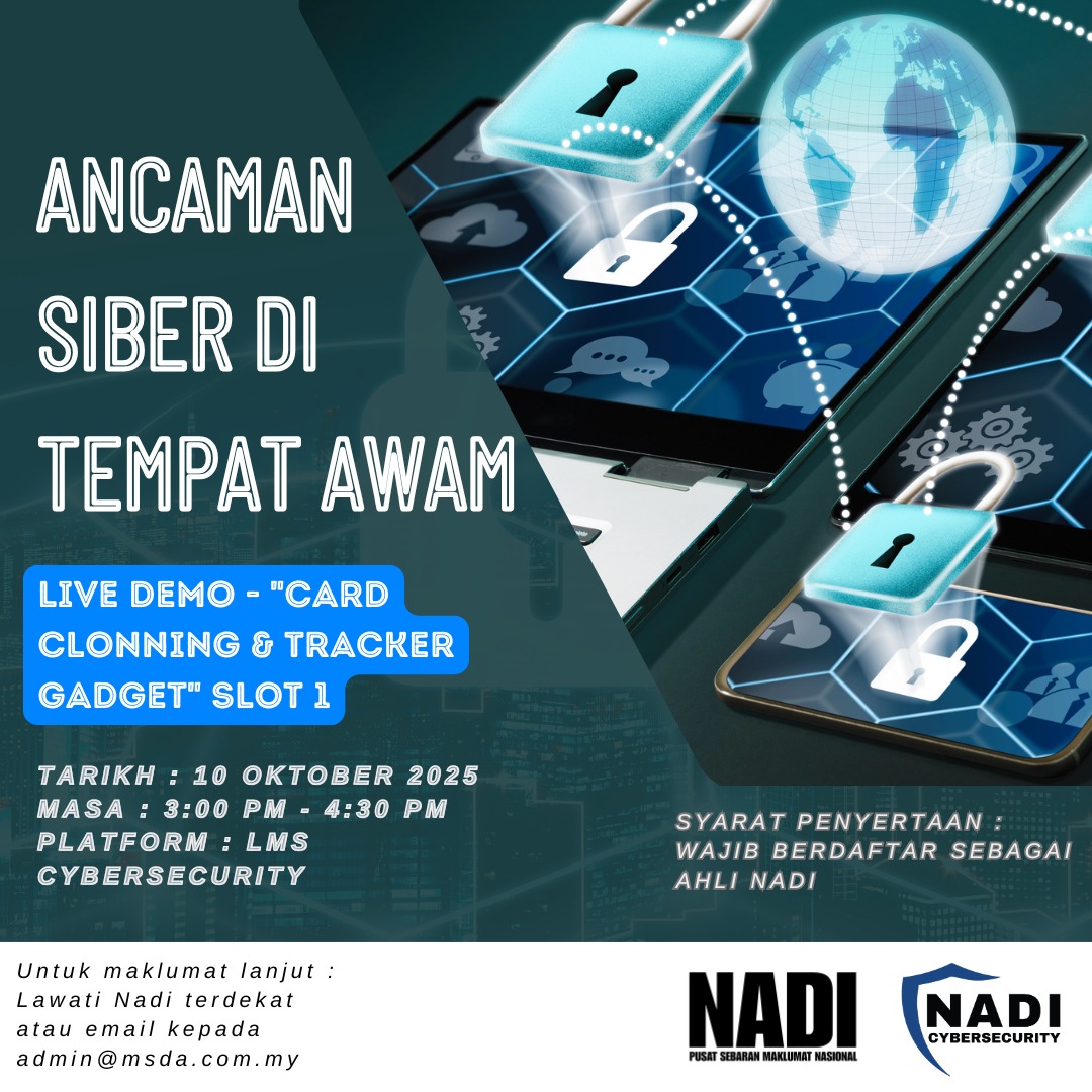 Dimaklumkan bahawa rakaman webinar “Sim swap : Ancaman Siber Kepada Usahawan Slot 2″ yang berlangsung pada 25 September 2025 kini telah dibuka untuk tontonan semula melalui LMS Cybersecurity. 📅 Tempoh Tontonan Rakaman:1 Oktober 2025 hingga 5 Oktober 2025 Rakaman ini […]