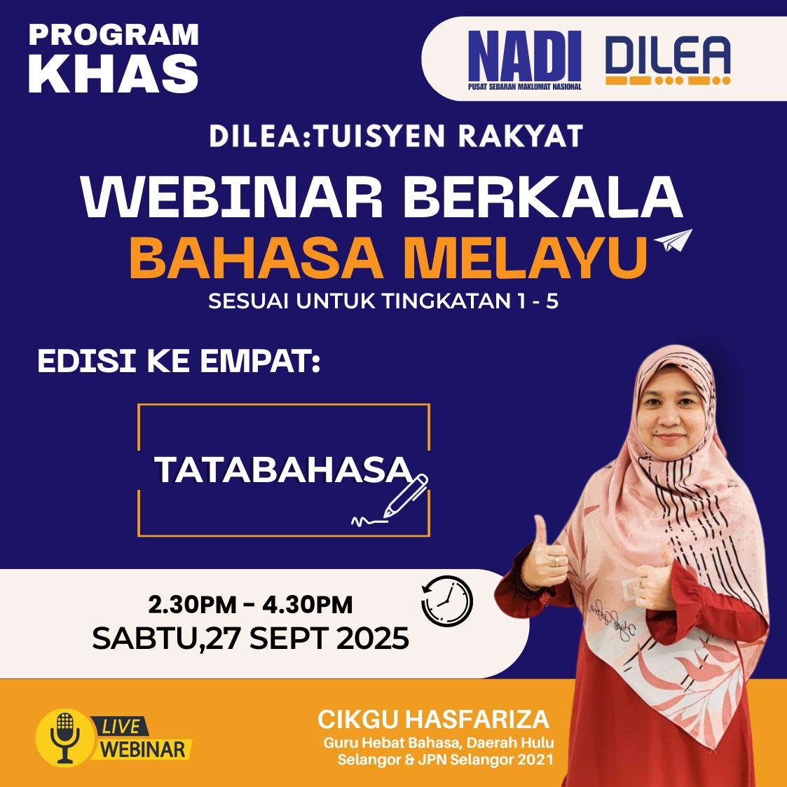 📢 WEBINAR BERKALA BAHASA INGGERIS EDISI 5 📢 Hello pelajar Tingkatan 1 – 5! 🌟 Nak kuasai Bahasa Inggeris dengan lebih mudah dan mantap?Jom sertai Webinar Berkala Bahasa Inggeris Edisi ke-5 khas untuk bantu anda faham konsep dengan lebih mendalam! […]