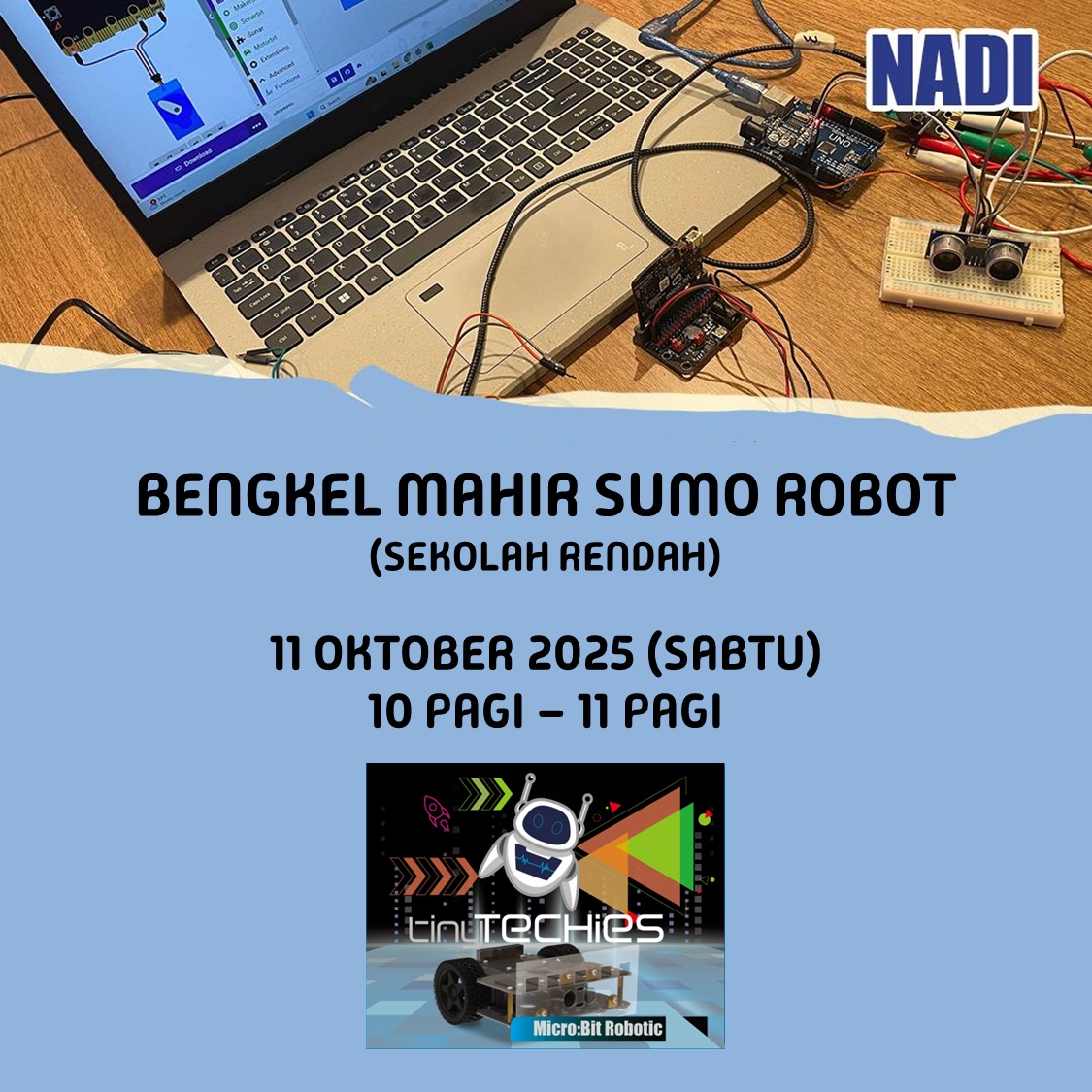 Kelas Tiny Techies untuk peserta yang berminat menyertai Bengkel Mahir Sumo Robot untuk pelajar sekolah rendah dan Bengkel IoT Inovasi untuk sekolah menengah.