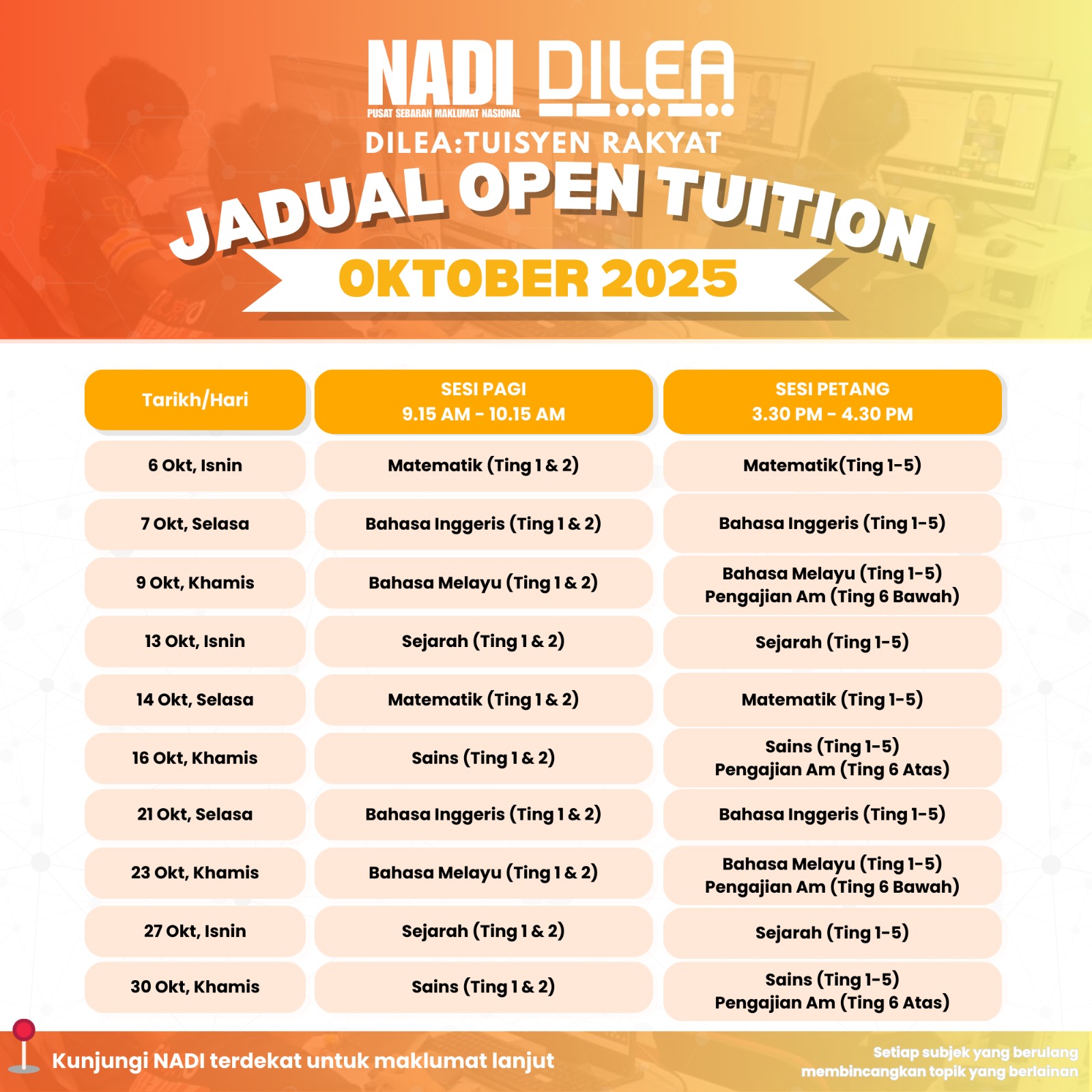 Jadual Open Tuition Oktober 2025
