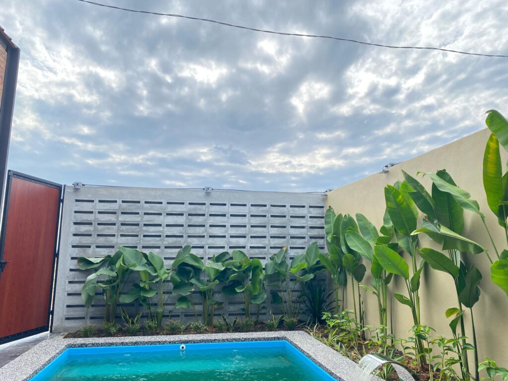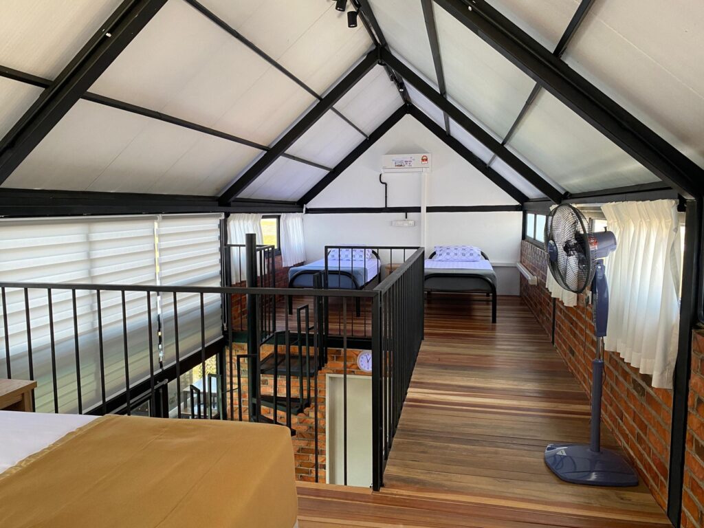 Terdapat juga di bahagian loteng dengan mempunyai dua katil single dan satu katil queen yang berkonsep terbuka yang juga memuatkan empat orang, menjadikan keseluruhan kapasiti maksimum sehingga lapan orang termasuk dewasa dan kanak-kanak. Di bahagian luar terdapat kolam renang dan kawasan untuk BBQ.